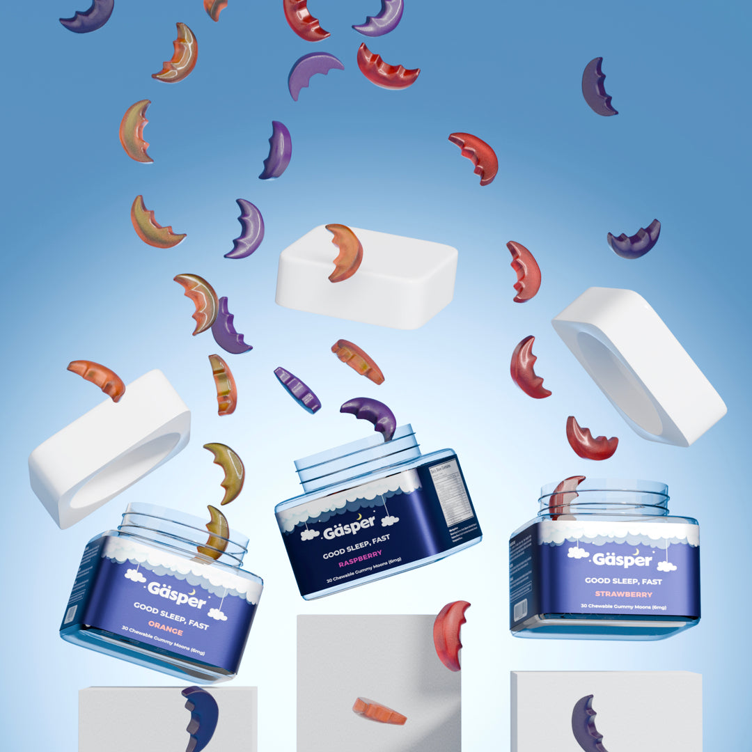 Gäsper Gummy Moons Collection är en kraftfull kombination av våra mest populära Gummy Moons i 3 olika smaker: hallon, ananas och apelsin. Gummy Moons ger en djup och återhämtande sömn. Den unika formulan kombinerar melatonin, GABA, Ashwagandha och L-teanin för maximal effekt. Viktigt: Ta endast när du ligger i sängen och är redo att sova, då effekten kan slå till snabbt.